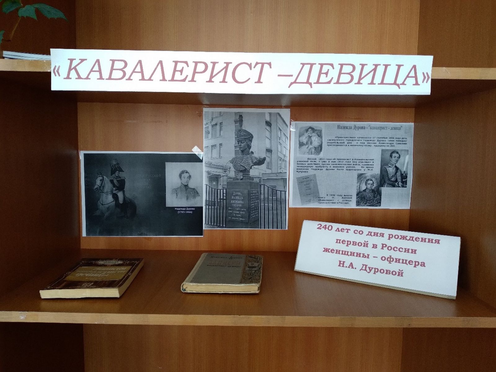 17 сентября 2023 года исполняется 240 лет со дня рождения Надежды Андреевны Дуровой, участницы Отечественной войны 1812 года, которая стала первой женщиной, награжденной за боевые подвиги знаком отличия Военного ордена. В начале XIX столетия ее жизнь удивляла, восхищала и привлекала внимание русского общества. Эта женщина ломала привычные стереотипы XIX века, а ее путь стал примером поиска внутренней свободы и самоотверженного служения Отечеству. Этому событию посвящена книжная выставка «Кавалерист-девица».