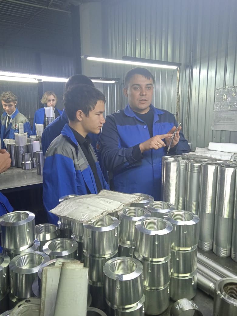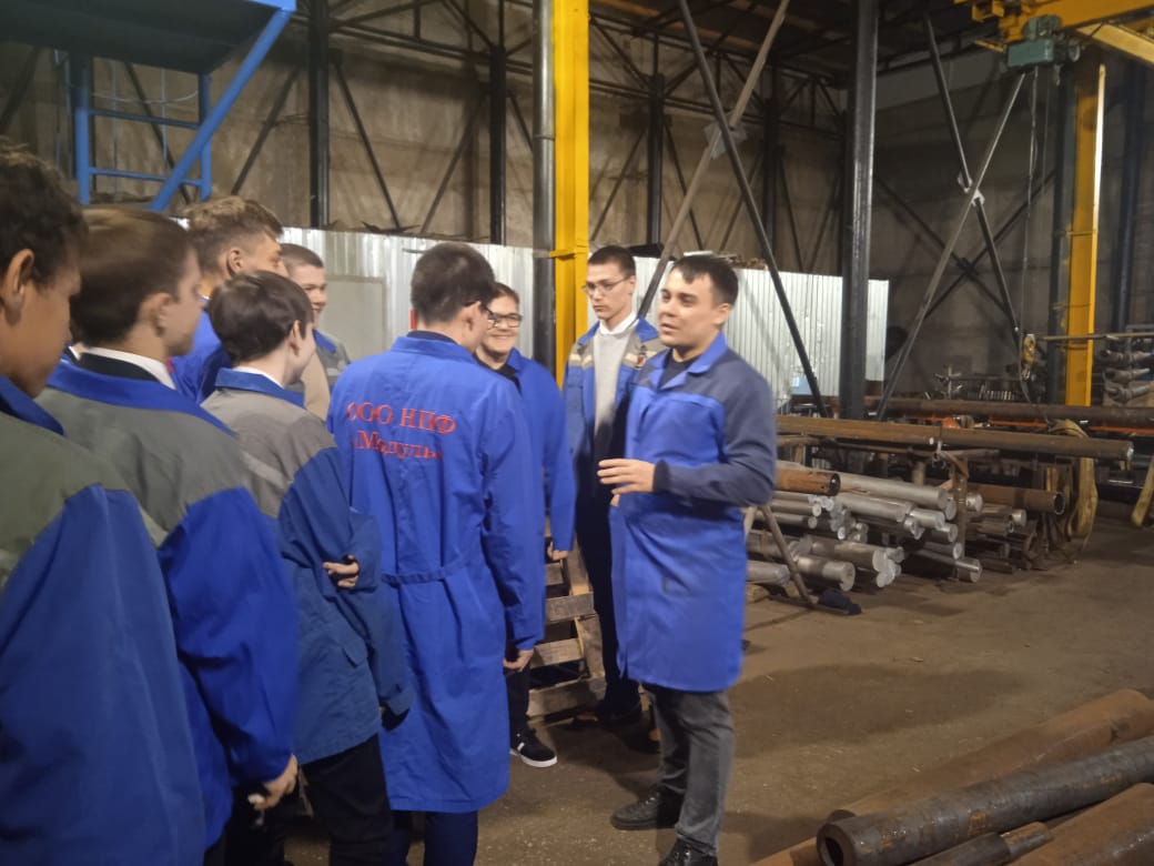 19 октября 2023 г. группа ТМ. 23 под руководством Ивановой Т. П. побывала на экскурсии на предприятии ООО НПФ "Модуль". Халирахманов Ильнур Ильшатович, главный инженер предприятия, сначала рассказал ребятам о деятельности ООО НПФ " Модуль", затем провёл интересную и познавательную для их будущей профессии экскурсию. Группа побывала на рабочих участках, где трудятся инженеры-конструкторы, занимающиеся проектированием деталей, затем- в трубном заготовительном цехе, и далее прошло ознакомление с устройством и процессом работы токарных и фрезерных станков. Ребята с интересом наблюдали за работой токаря, задавали вопросы. Экскурсия всем очень понравилась.