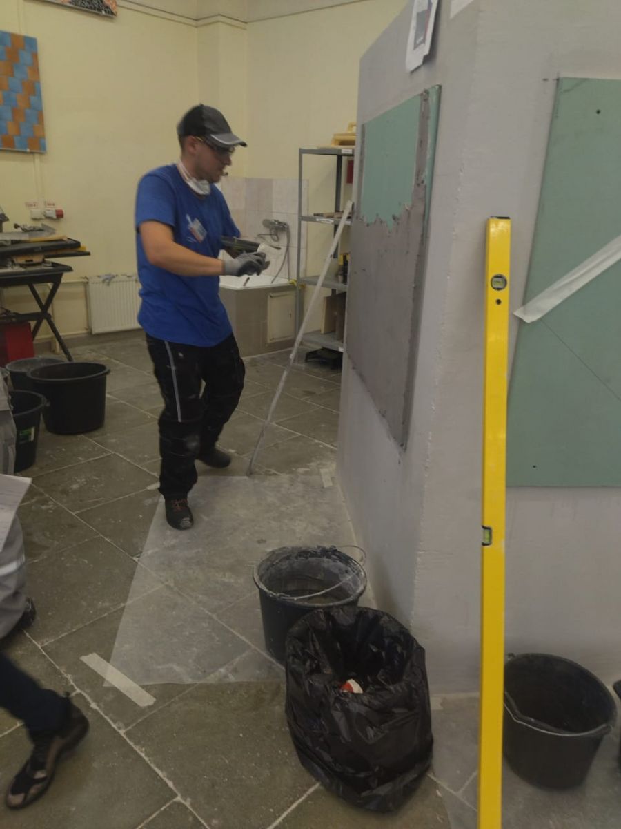 Серебро в компетенции «Сухое строительство и штукатурные работы» категория «Специалист». Участник Чернышев Валерий. Эксперт Тазиева Рамзия Абзятовна.