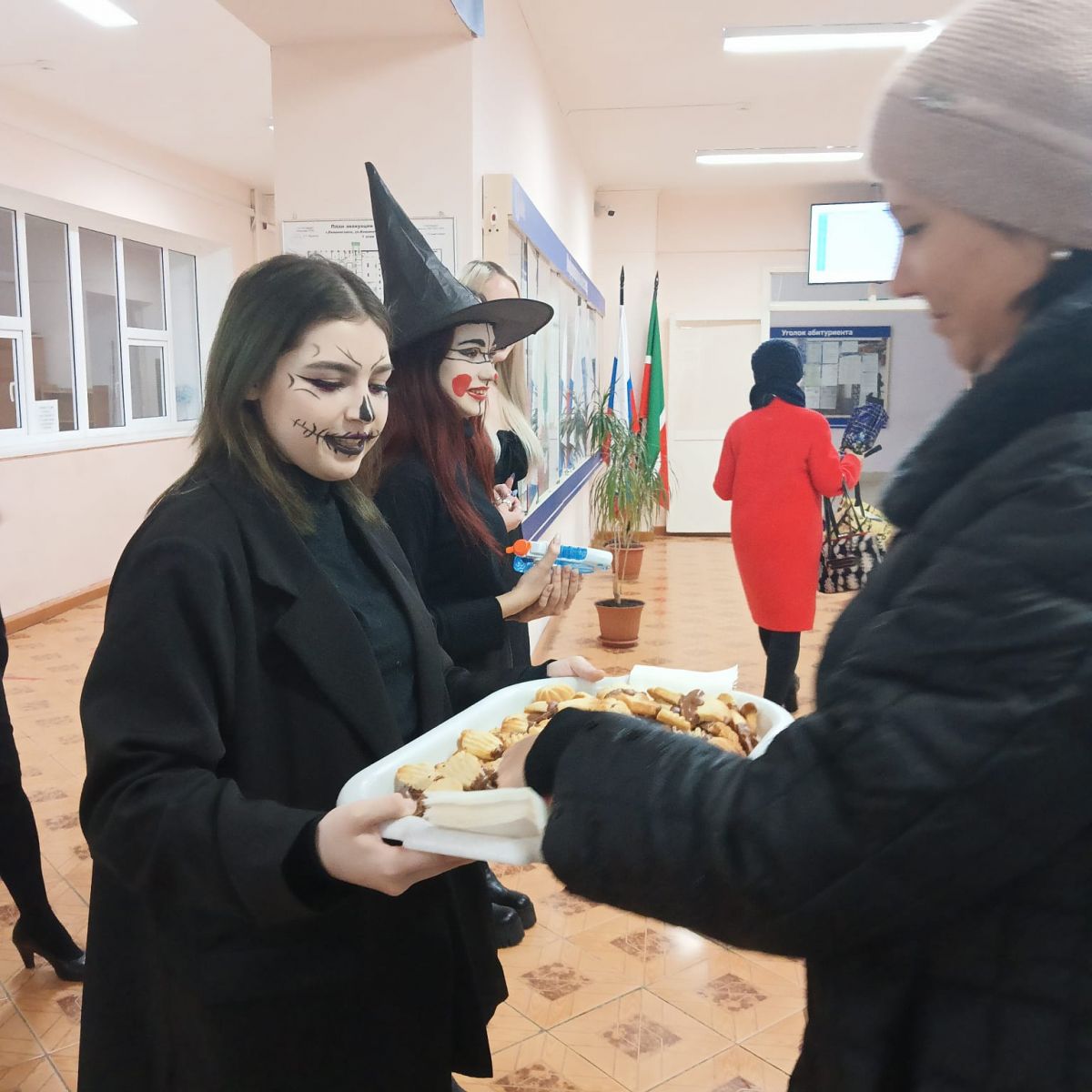 31 октября в колледже началось с костюмированной встречи! Студентов и преподавателей встречали персонажи Хеллоуина. Они угощали всех входящих печеньем, испеченным студентами нашего колледжа под руководством Ваструковой Н. И., в стиле праздника "Хеллоуин".