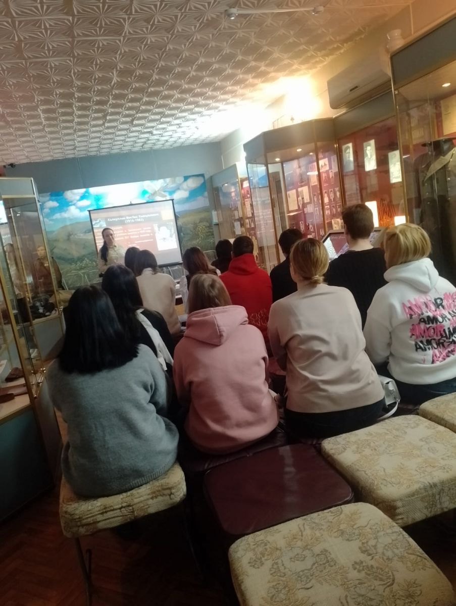 Работники музея рассказали о героях нашего района,показали их личные вещи, письма.Студенты с большим интересом слушали выступления.