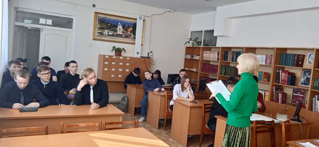 Сегодня в рамках патриотического воспитания в читальном зале библиотеки для студентов ТОР.22 и для студентов, находящихся в группе риска прошел познавательный классный час на тему "Есть ценности, которым нет цены".