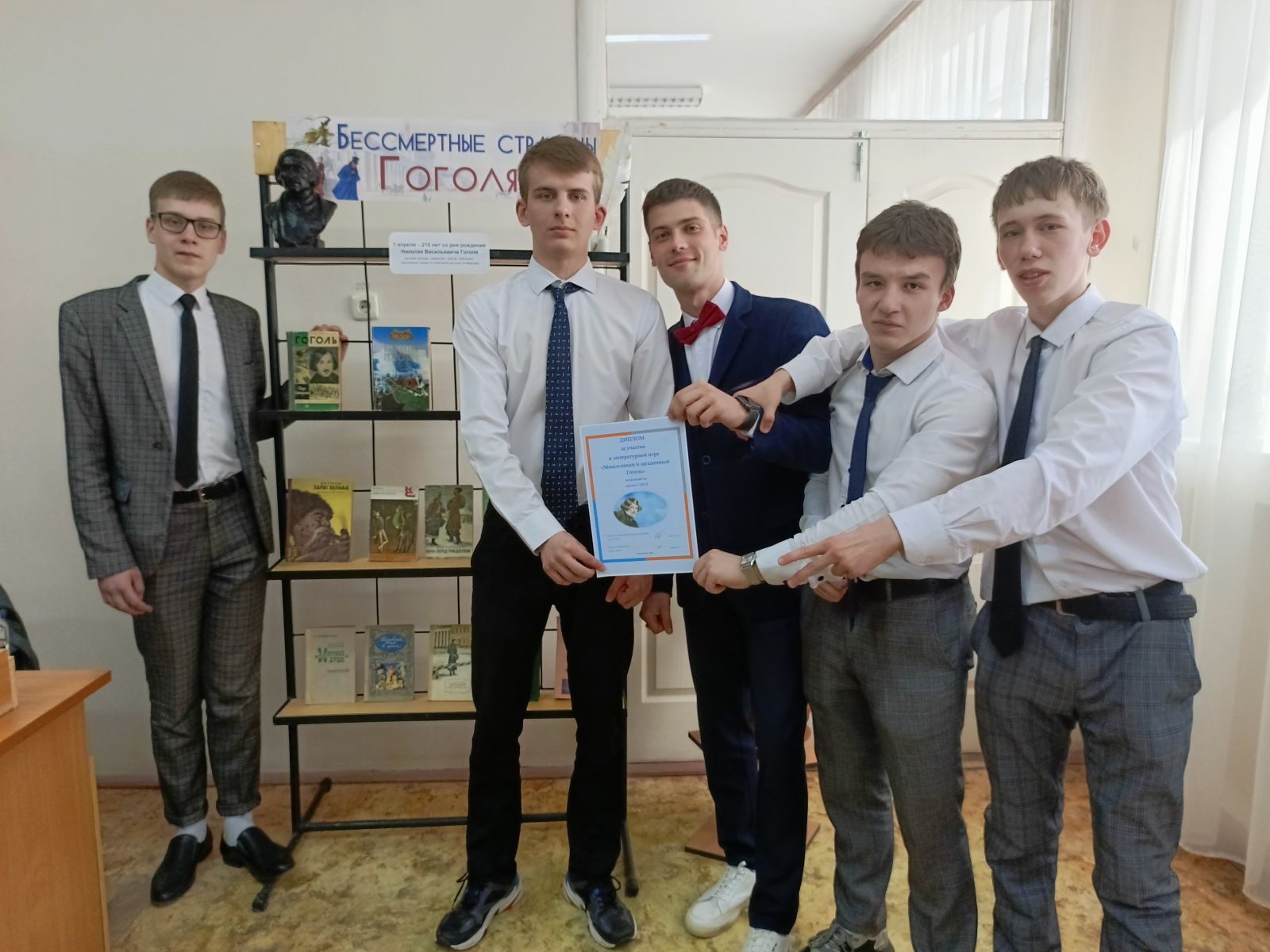 Игра, посвященная юбилею русского прозаика, драматурга, признанного одним из классиков русской литературы, построена в формате телевизионной передачи «Своя игра». В начале мероприятия Галина Николаевна сделала обзор книжной выставки «Бессмертные страницы Гоголя», на которой представлены раритетные издания, а также книги и статьи, посвященные жизни и творчеству писателя.