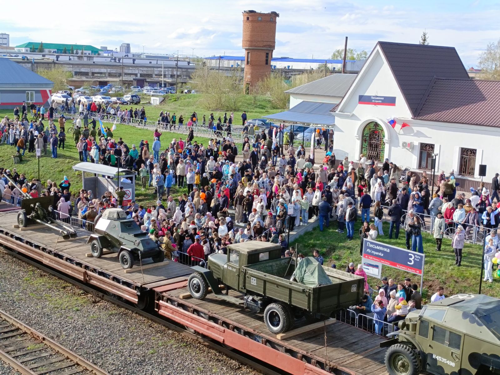 Активисты волонтерского движения ЛПК «Шаг навстречу» вместе с сотнями горожан, ветеранов боевых действий, почетными гостями города 1 мая на железнодорожной станции Письмянка встретили «Паровоз Победы», посвященный 80-летию Победы в Великой Отечественной войне. Девять вагонов ретропоезда, словно страницы истории раскрылись, представляя взглядам, платформы, на которых выставлены бронетехника, образцы артиллерийских орудий той эпохи.
