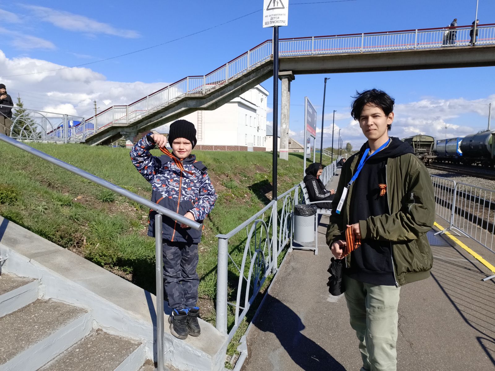 Волонтеры раздали георгиевские ленточки – символ доблести, юбилейные флажки и воздушные шары. На перроне звучали песни, опаленные войной. Желающие могли сфотографироваться с сопровождающими реконструкторами в форме бойцов Красной Армии на фоне военной техники.