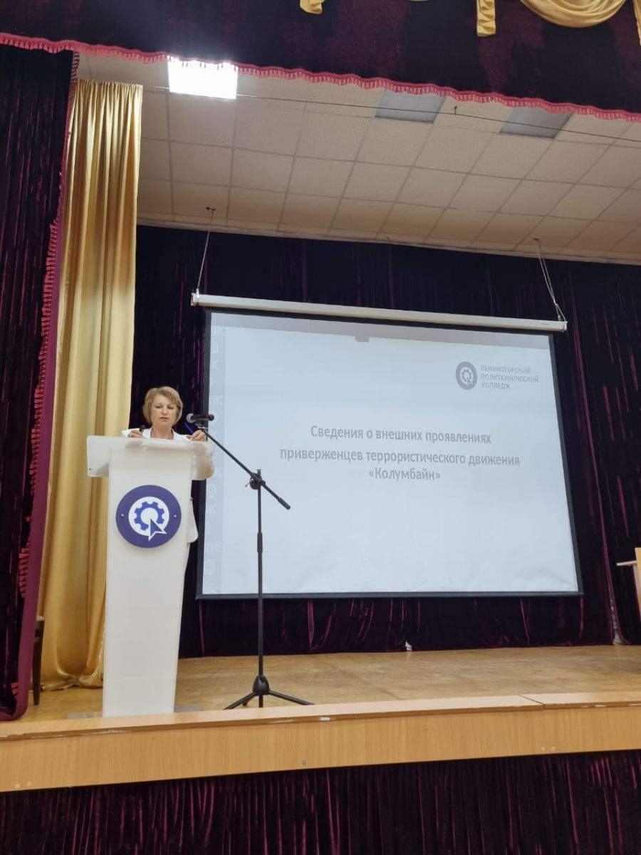 3 июня 2025 г. в рамках заседания педагогического совета, во исполнение протокольного поручения решения Совета Безопасности Республики Татарстан, заместитель директора по воспитательной работе Фролова О. П. ознакомила педагогический коллектив с информацией о внешних проявлениях приверженцев террористического движения "Колумбайн".
