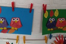 Дети очень любят мастерить! Сегодня они выполняли аппликацию на тему «Совушки». Вначале занятия ребята отгадывали загадки про совы, рассматривали иллюстрации осеннего леса. А потом уже создавали свою картину осени используя цветную бумагу и клей. Ребята смастерили вот такие совушки.