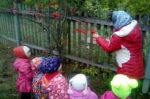 Сегодня, во время прогулки воспитатель Мрясова А.Г. провела беседу с детьми по теме "Знакомство с рябиной" . В ходе беседы воспитатель закрепила представления старших дошкольников о деревьях, их красоте и пользе. Учила быть наблюдательными. Затем, после прогулки она помогла освоить навыки изготовления барельефа (разминать и размазывать пластилин по картону для создания необходимого фона композиции, раскатывать для создания ягод, прикреплять элементы композиции к картону).