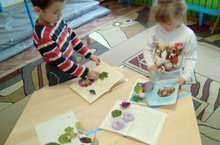 Сегодня, с целью расширения и обогащения знаний детей об особенностях осенней природы после прогулки дети собирали гербарий из листьев деревьев и цветов с участка детского сада.