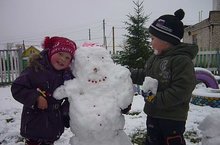 Вот счастье выпал первый снег,дети с удовольствием лепили снеговика..