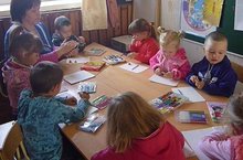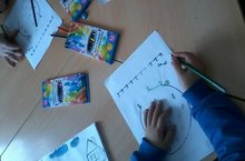 Малыши у нас лепят, а постарше пытаются рисовать...