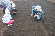 Сажаем морковку, свеклу и лучок... 14.05.2015 Подготовительная группа с удовольствием помогает сажать лучок.
