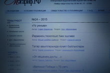 В №24 электронного журнала «Магариф» опубликована разработка внеклассного мероприятия «Великой Победе – 70 лет» Саушкиной А.А., учителя русского языка и литературы. Разработка включает в себя авторские стихи учителя и предназначена для использования при проведении митинга в честь торжественной даты. Поздравляем коллегу с публикацией!