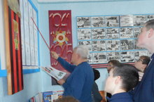 В рамках тематической недели "История в школе" учитель истории и обществознания Пимуков А.П. организовал экскурсию в музей школы для учащихся 5-9 классов. Используя музейные стенды, посвящённые теме Великой Отечественной войны, он рассказал о самых крупных сражениях, героях ВОВ Лениногорского района, ознакомил с военными документами и наградами участников ВОВ - жителей нашего села.