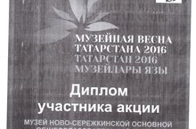 Музей боевой и трудовой славы нашей школы по итогам акции "Музейная весна Татарстана-2016" награжден за участие в акции дипломом Ассоциации музеев Татарстана при МК РТ. Акция проходила в 2015-2016 учебном году.