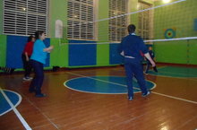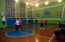 В рамках месячника военно-патриотического воспитания провели соревнование по волейболу между учениками и учителями школы.