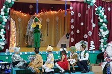 Тугызынчы сыйныф укучылары "Алтын балык" әкиятенә экология ягыннан да якын килеп, кызыклы маҗара күрсәттеләр. Сәхнәдә катнашучы һәр артистка, аларны әзерләүче сыйныф җитәкчеләренә бик зур рәхмәт. Аерым рәхмәтне җыр һәм хезмәт укытучысы Талига Шамил кызына әйтәсе килә, аның осталыгы, мәктәп, сәхнә бизәлешләре, үтемле киңәшләре бәйрәмгә дәрт өсти, тиешле дәрәҗәдә булырга өйрәтә. Билгеле, бәйрәмдә Кыш бабай белән Кар кызы да теләкләр әйтте, Яңа ел күчтәнәче өләште, әйлән- бәйлән әйләнде. Шулай итеп, Гаилә елына йомгак ясалды, бәйрәмгә килүче әти- әниләр сәхнәдә үз йолдызын күреп сөенеп утырды. Шулай була күрсен, 2025 ел һәр гаиләгә сәламәтлек, уңышлар, бәхет алып килсен. Елан елы - тынычлык һәм җиңүләр елы булсын иде.