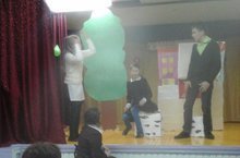 "Йолдыз" түгәрәгенә йөрүче укучылар, җитәкчеләре Сайфиева Т.Ш. белән, Т.Миңнуллин әкиятен күрсәтергә әзерләнәләр.