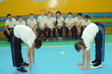 10 октябрь көнне укучылар сыгылмалылыкны билгеләү буенча ГТО нормаларын тапшырдылар