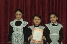 Трио "Шатлык" (Камалтдинова А., 3 кл., Бахрамова З, 3 кл., Ситдикова А. 4 кл. участвовала в муниципальном конкурсе патриотической песни "Пою, моё Отечество" (младшая возрастная группа) и заняла 3 место. Руководитель: учитель музыки Файрушина Р.Р.