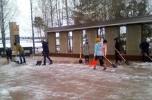 Бүген укучылар белән беренче субботникка чыктык, жиңү паркында кар чистарттык, һәйкәлләр алдын чистарттык.