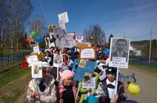 Сегодня состоялась Всероссийская общественная акция "Бессмертный полк", в ходе которого учащиеся, учителя, односельчане шли колонной и несли транспаранты с фотопортретами своих родственников, участвовавших в Великой Отечественной войне.