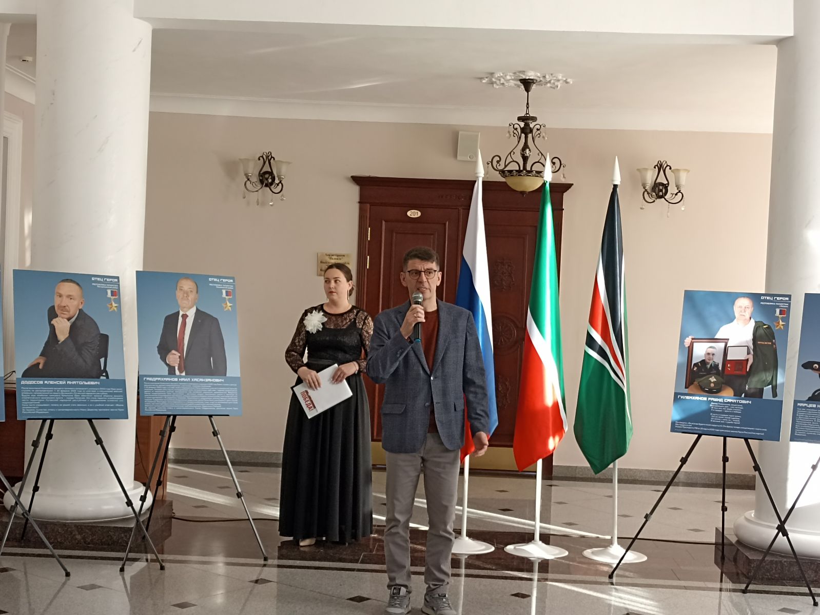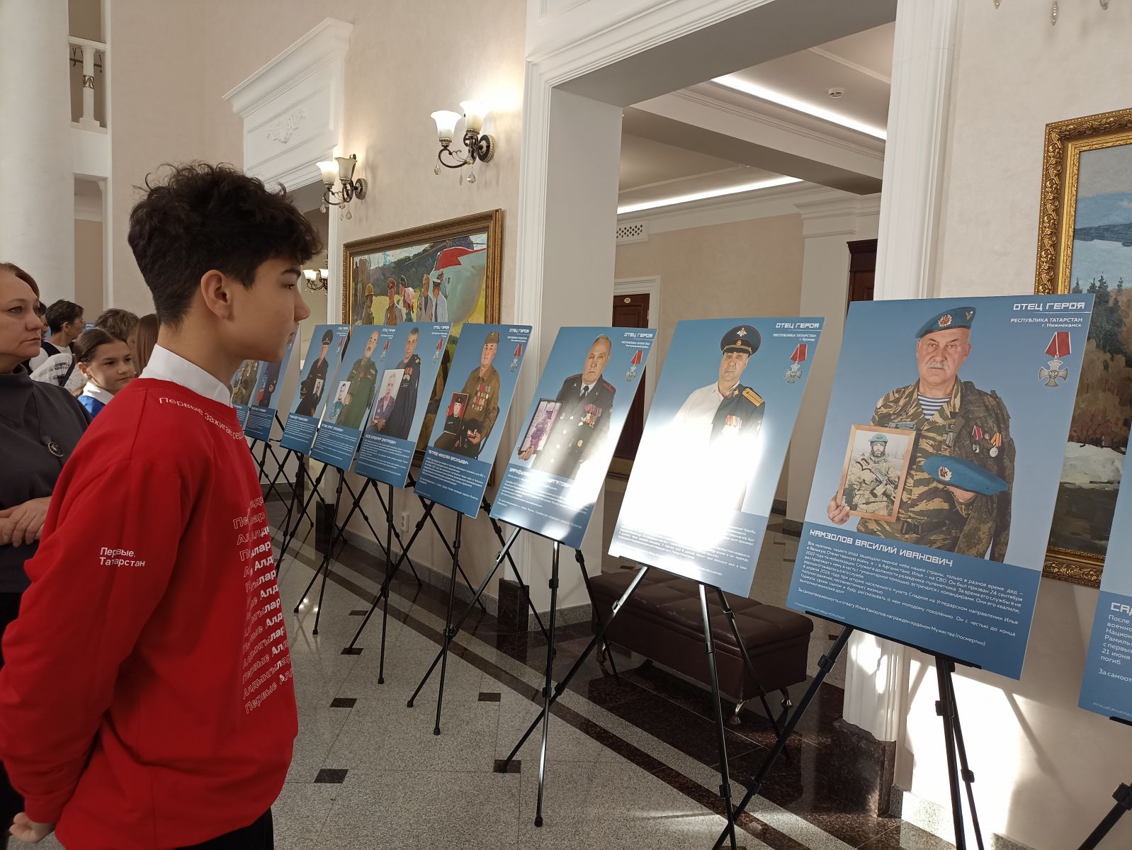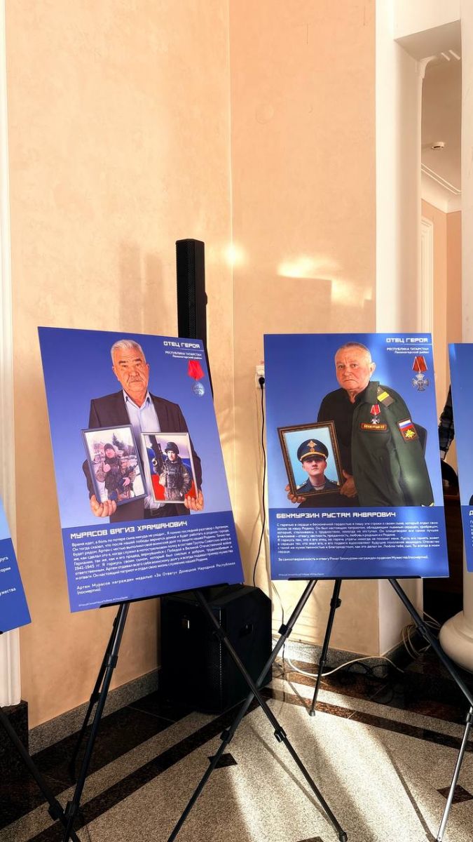 В городе Лениногорске проходит передвижная фотовыставка «Отец Героя», посвященная отцам военнослужащих, которые участвовали в боевых действиях . Это часть республиканского проекта, направленного на патриотическое воспитание молодежи. Выставка включает портреты местных героев и будет работать до конца года. Экспозиция включает в себя 45 портретов отцов и их сыновей –участников специальной военной операции . Среди них четверо награждены званием «Герой России» , 32 –орденом Мужества . На фотографиях отцы держат в руках снимки сыновей, армейские береты, награды и личные вещи . Каждый экспонат символизирует прочную связь поколений и семейную память о воинах , которые являются примером доблести и отваги.