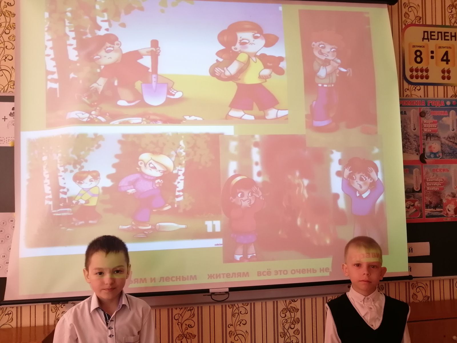 Учащиеся знакомились со сказочными героями Эколят. Учителя познкомили детей с друзьями и защитниками природы: Шалуном, Умницей, Елочкой и Тихоней – так как они родились в лесу, то знают, как нужно беречь природу. В игровой форме учащиеся вспомнили правила поведения в природе. Ребята торжественно произнесли клятву “Эколят”. Была проведена выставка рисунков “Жизнь в гармонии с природой”. Всем учащимся были вручены эмблемы с логотипом “Эколята”.