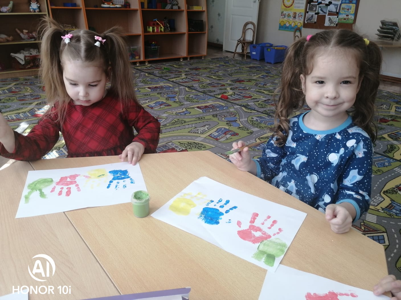 Познакомить детей с нетрадиционной техникой рисования ладошками и пальчиками;