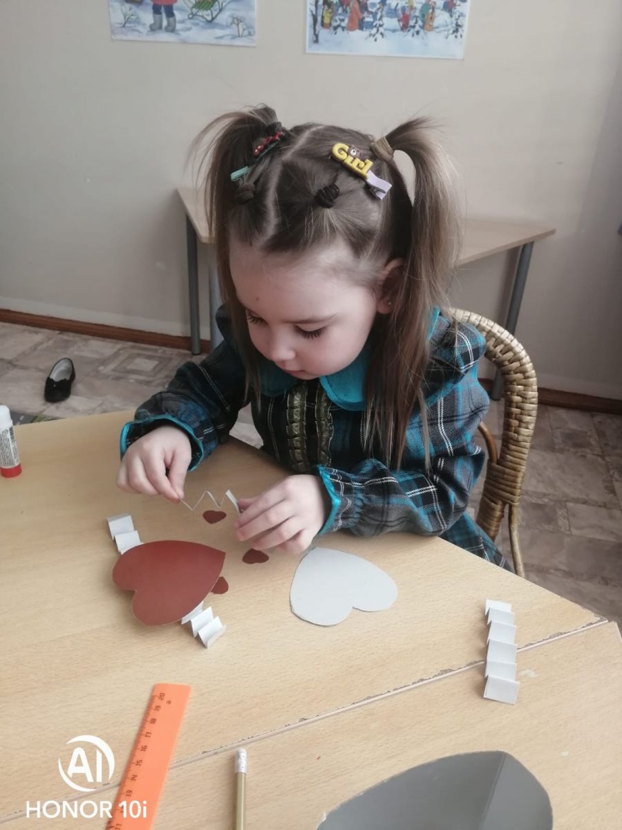 Сердечки к 14 февраля. Цели и задачи: расширять знания детей о праздновании дня Святого Валентина; закрепить полученные умения и навыки работы с бумагой и картоном; воспитывать чувство доброты и душевной щедрости; обратить внимание на эстетические требования к качеству изделия сувенирного характера; воспитывать художественные и эстетический вкус; воспитывать аккуратность, усидчивость, трудолюбие; продолжать учить работать по образцу, внося элементы творчества; изготовить "валентинку" по предлагаемому образцу.