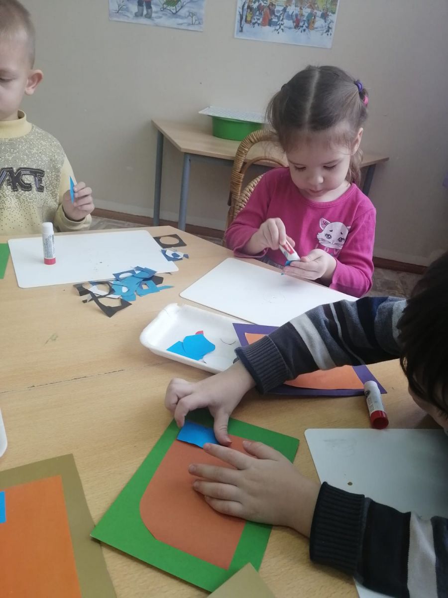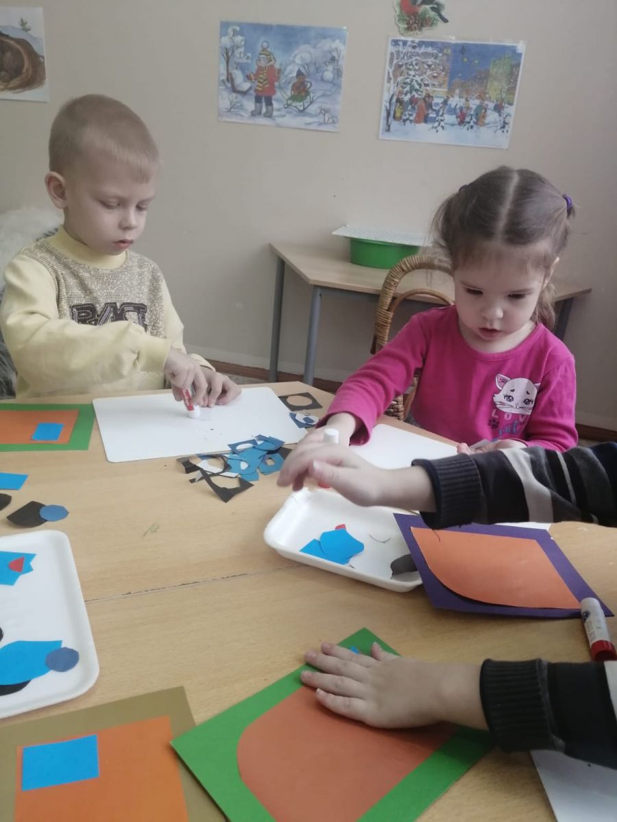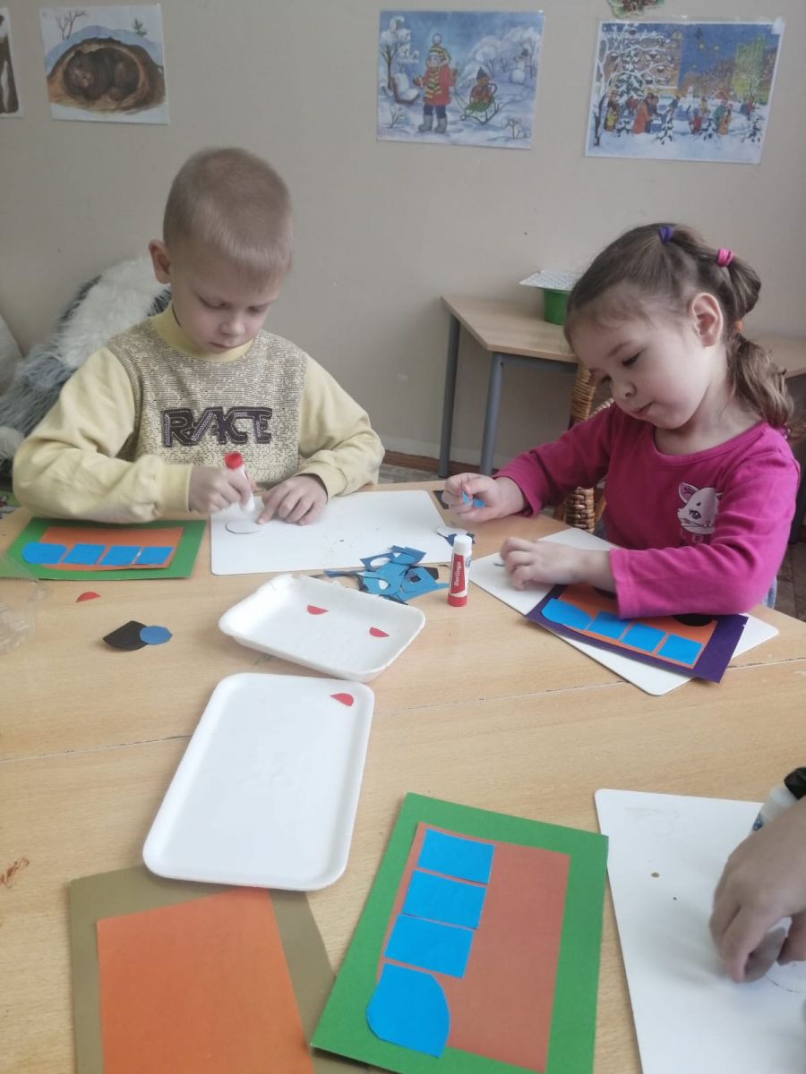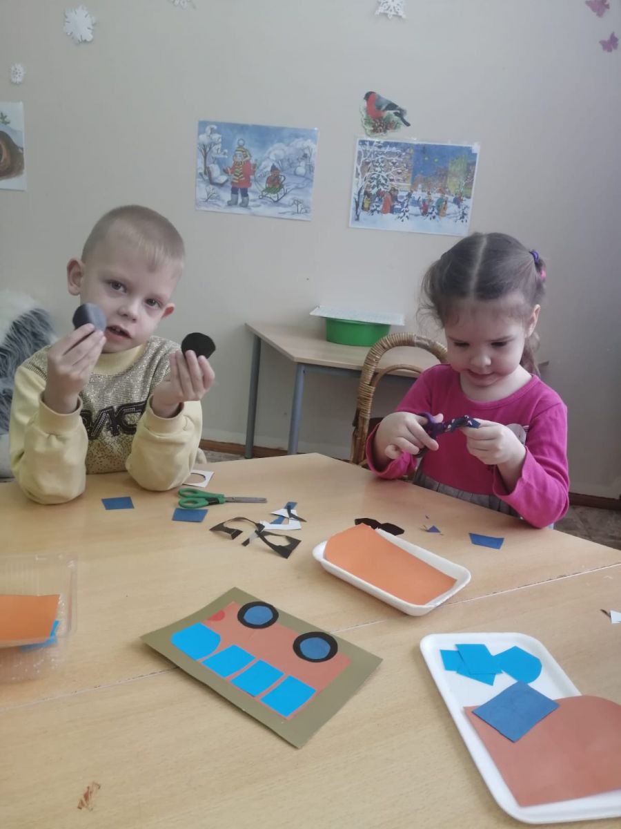 Материалы и оборудование: игрушечный автобус, иллюстрации автобус, дорога и пр., бумага размером ½ альбомного листа для основы (фона), набор цветной бумаги (прямоугольные полоски, квадраты, прямоугольники), ножницы, клей, салфетки.
