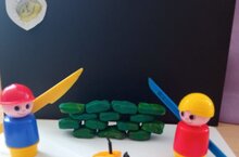 Предложить объединить фигурки в композицию, вызвать радость от восприятия общей работы.