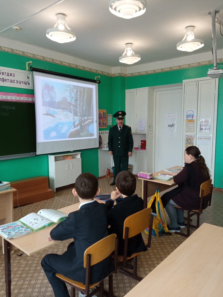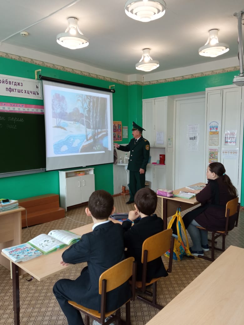 И вновь нашу школу посетил специалист заповедника "Степной" Динмухаметов Фарит Нургалеевич, рассказавший о весеннем развитии природы. Ученики внимательно слушали его и задавали вопросы, касающиеся экологических тем.
