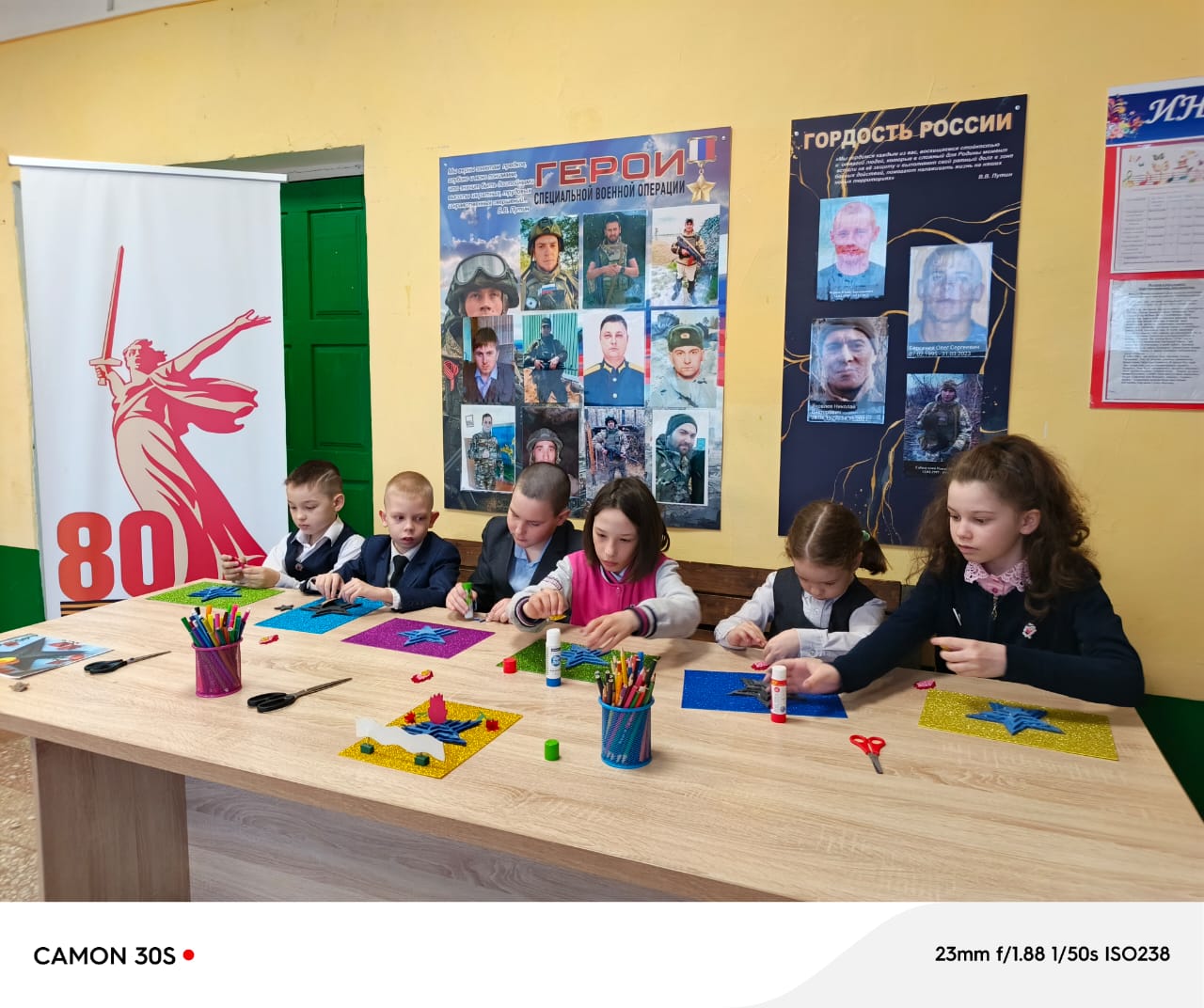 Под таким заголовком прошло сегодня мероприятие, организованное в сельской библиотеке библиотекарем Абдуллиной Ф. и заведующим Новочершилинским СДК Ханнановой Н.В. Основной целью данного мероприятия было довести глубже до учащихся школы приближение праздника , посвященного 80 - летия великой Победы. Организована выставка книг о Великой Отечественной войне, были стенды об участниках СВО - односельчанах.Ученникам было предложено сделать своими руками небольшие сувениры, посвященные данному мероприятию. Дети справились с этим заданием с большим воодушевлением . Это мероприятие оставило в их душах значимость приближающейся даты Победы.