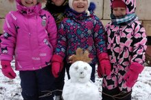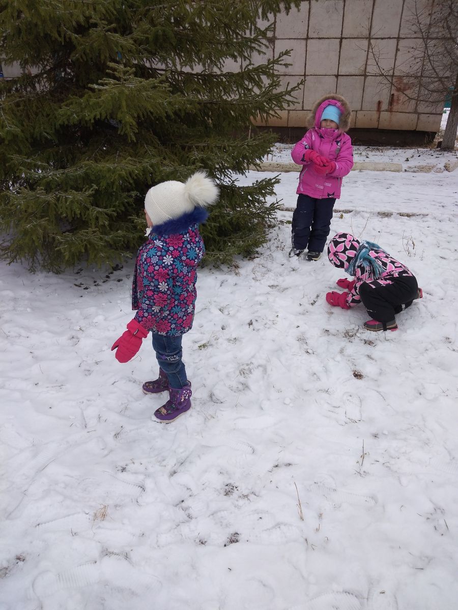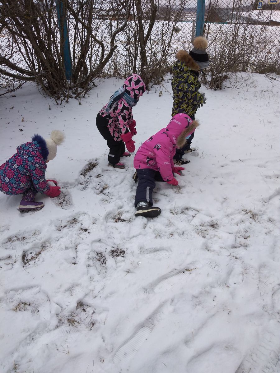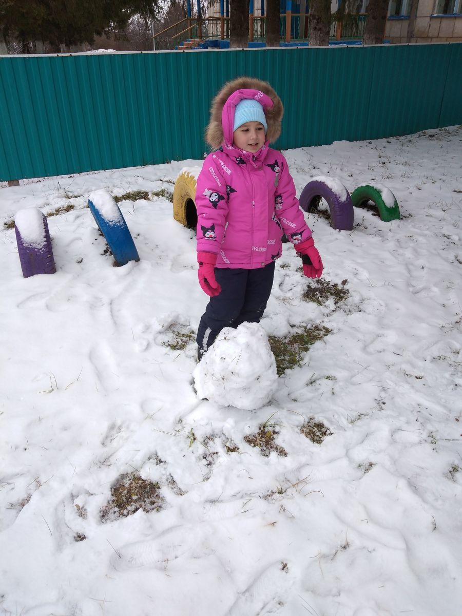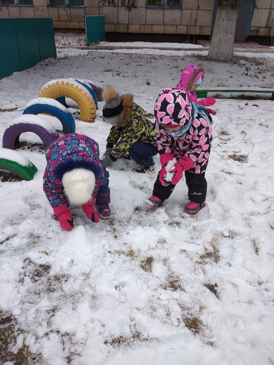 Прогулка "Вот и первый снег" Познавательно-исследовательская деятельность : снег стал влажным , липким. Из него можно слепить снежки, снеговика. Продуктивная деятельность : слепили снеговика.