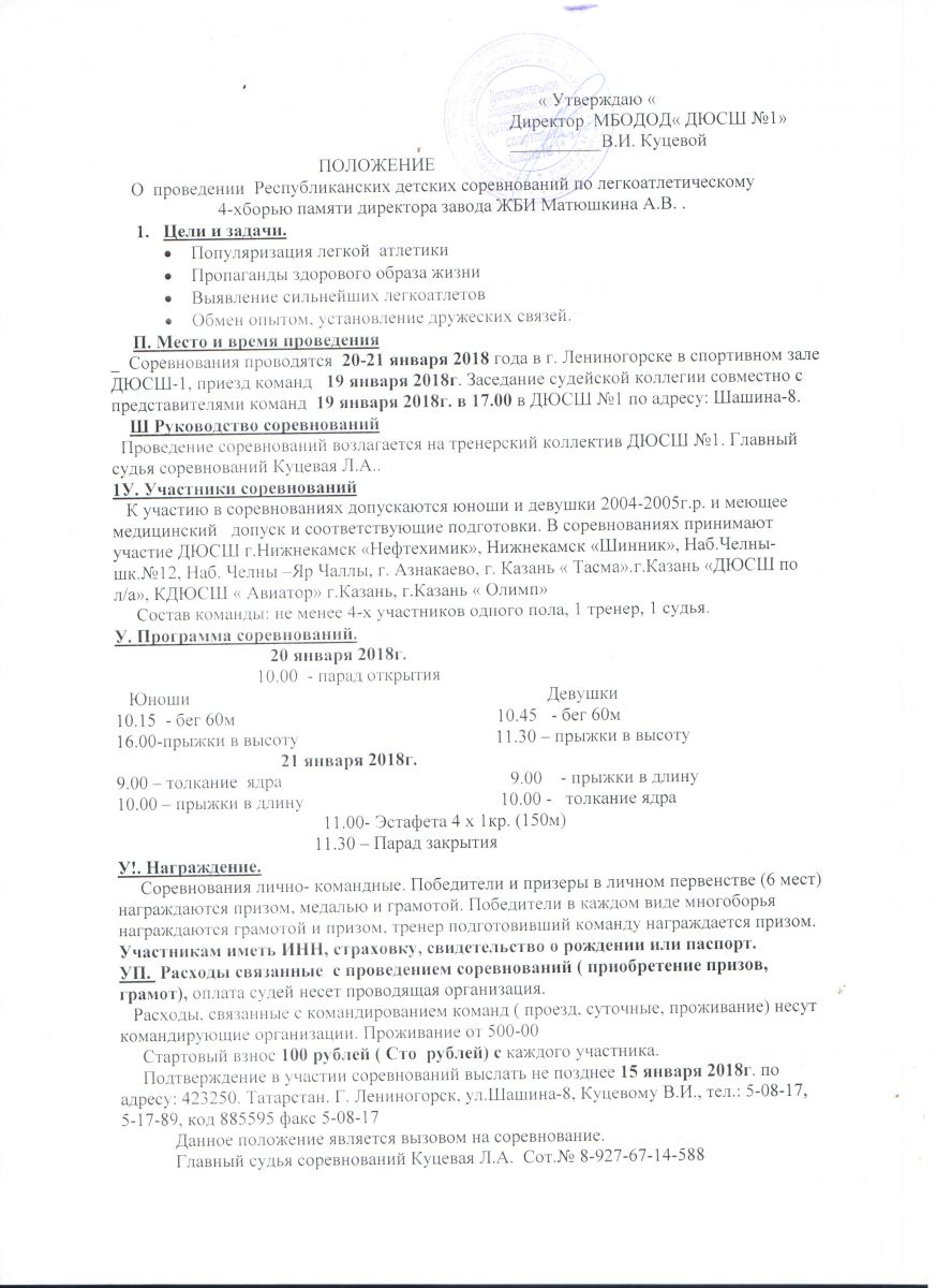 Муниципальная бюджетная организация дополнительного образования "Спортивная школа №1" Лениногорского муниципального района Республики Татарстан