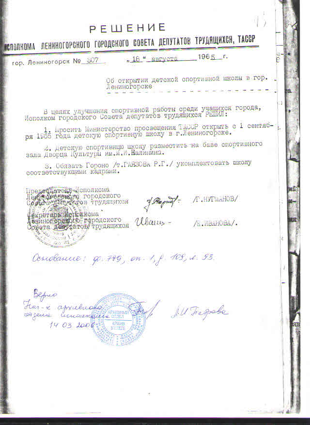 Муниципальная бюджетная организация дополнительного образования "Спортивная школа №1" Лениногорского муниципального района Республики Татарстан