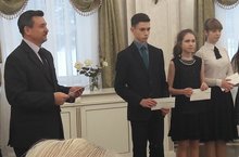 Сегодня во Дворце бракосочетаний прошло торжественное мероприятие, посвященное Дню Конституции РФ. 12 декабря День Конституции Российской федерации— один из значимых государственных праздников России.С приветственным и поздравительным словом выступил заместитель руководителя Исполкома района по социальным вопросам Владимир Друк. Владимир Васильевич провел церемонию награждения стипендиями Главы Лениногорского муниципального района талантливым ребятам. Среди них и наши ученики Щербаков Илья (преп. Саримова Г. М.), Шестакова Александра (преп. Захарова Н. Г.), Зитханова Алия (преп. Ахметзянов Р. Ш.)