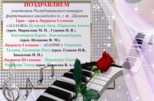 Поздравляем участников Республиканского конкурса фортепианных ансамблей в п.г.т. Джалиль.