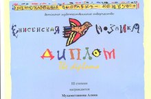 Поздравляем воспитанницу Лениногорской детской художественной школы Мухаметзянову Алину с победой в Международном конкурсе детского художественного творчества «Енисейская мозаика»! Алина награждена медалью и дипломом III степени.