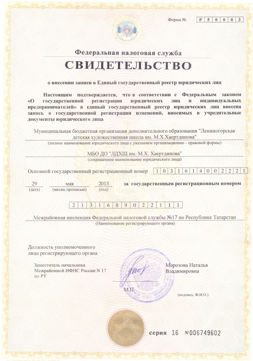 Свидетельство о внесении записи в Единый государственный реестр юредических лиц