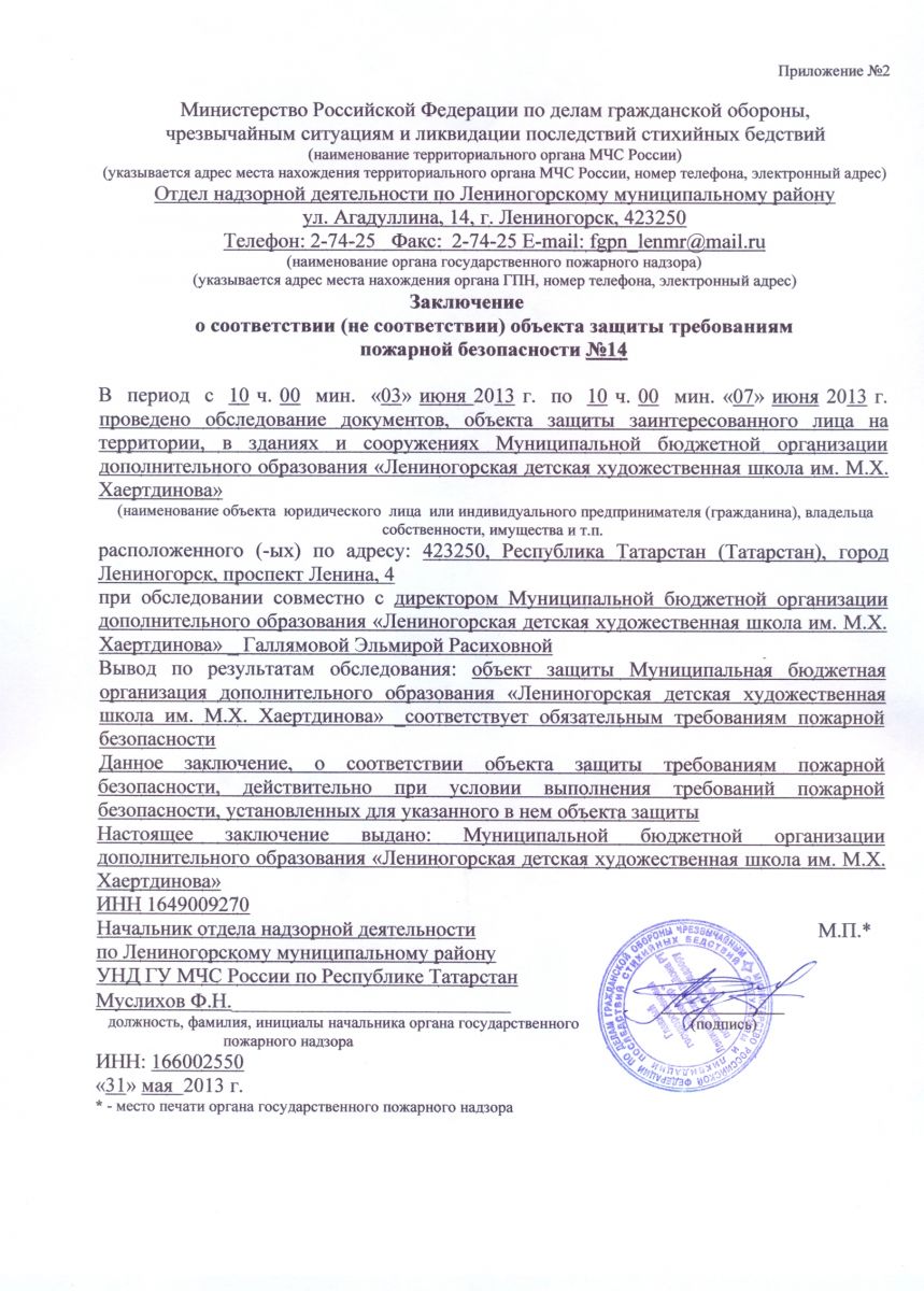 Заключение о соответствии объекта защиты требованиям пожарной безопасности
