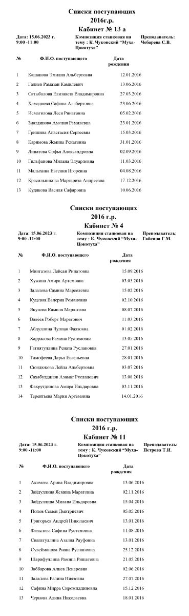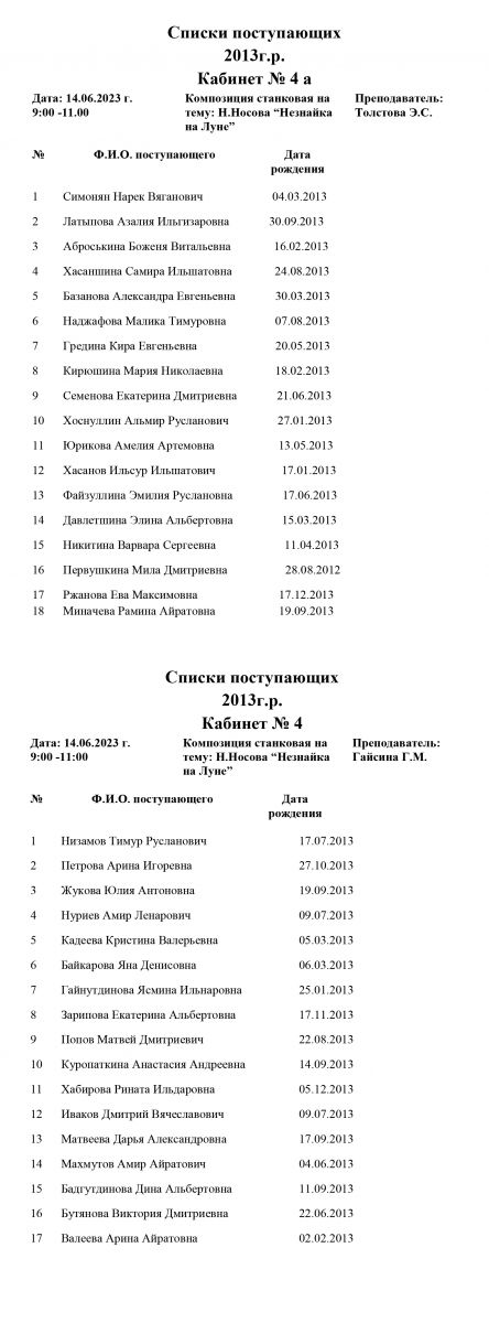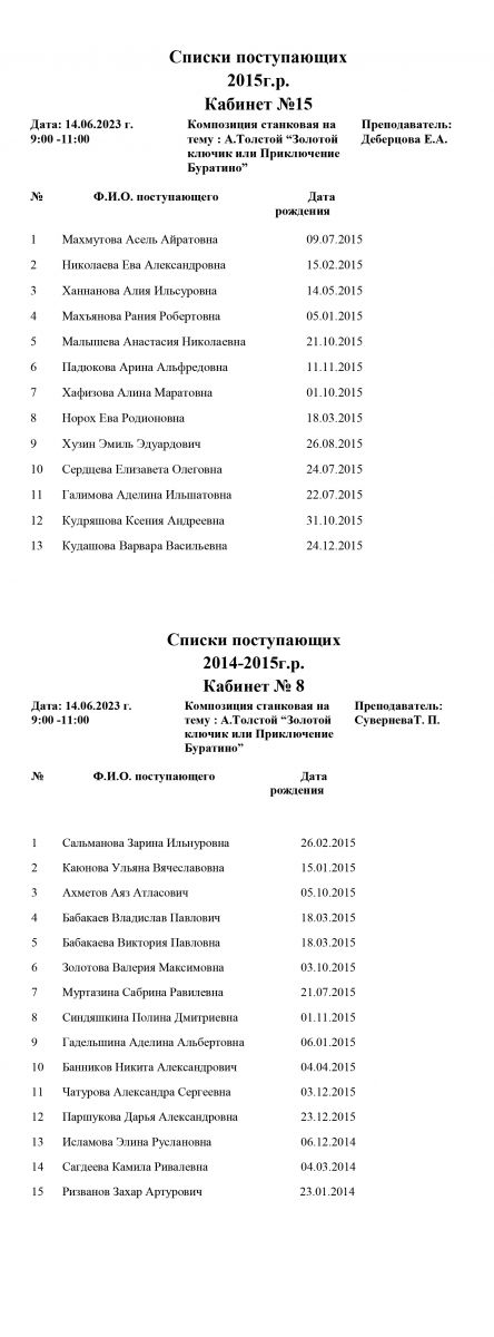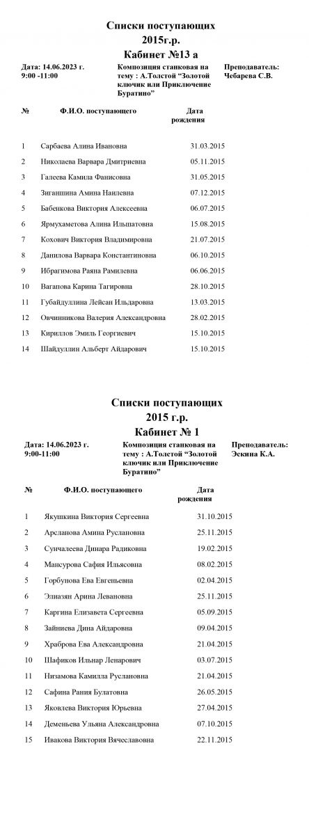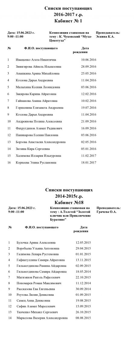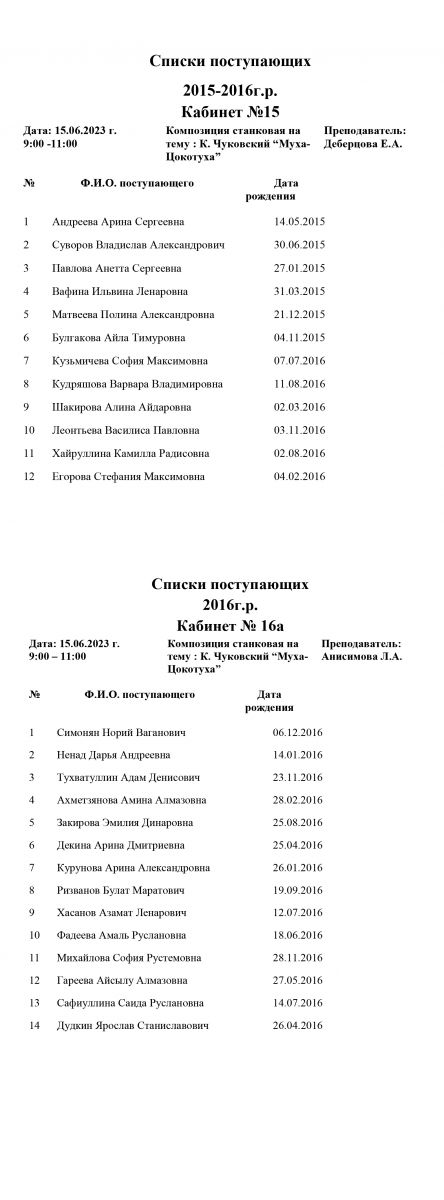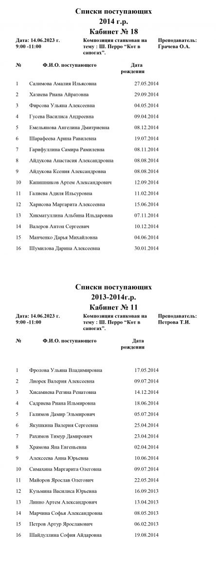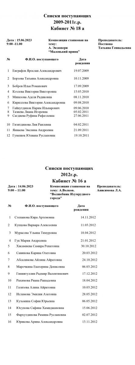 СПИСКИ ТВОРЧЕСКОГО ОТБОРА 14-15 ИЮНЯ 2023г.