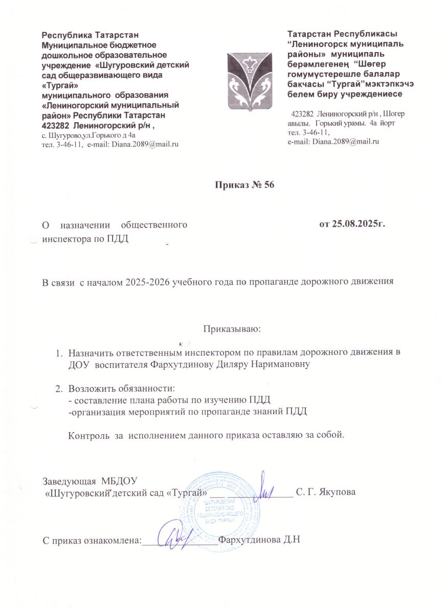 Муниципальное бюджетное дошкольное образовательное учреждение «Шугуровский детский сад общеразвивающего вида «Тургай» муниципального образования «Лениногорский муниципальный район» Республики Татарстан