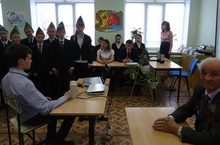 В преддверии праздника 9 Мая учащиеся 5Б класса (классный руководитель Горшенина Н.М.) поздравили ветерана Великой Отечественной войны Давлетова Ф.А. и его супругу, труженицу тыла, с 69-годовщиной со Дня Победы. Фарит Абдулнагимович поделился с подрастающим поколением своими воспоминаниями о страшных военных годах и высказал свои взгляды на современную жизнь, а юные участники встречи подарили им в знак благодарности стихи и песни на военную тематику.