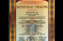 Почетной грамотой за большой вклад в организацию работы по военно-патриотическому воспитанию молодежи награждены директор СОШ №2 Платонова Ольга Константиновна и заместитель директора по воспитательной работе Михайлова Татьяна Васильевна.