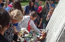 27 июля в 10:00 в г. Лениногорск на Аллее Героев у Мемориального камня состоялась акция, посвященная Дню памяти детей-жертв войны в Донбассе. Собравшиеся отдали дань памяти безвременно ушедшим детям и возложили к Мемориалу цветы, бумажных голубей и игрушки.