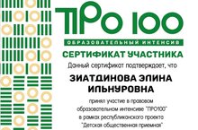 Обучающиеся объединения "Только вперёд" МБУДО "Дом детского творчества" - активисты Районного совета "Альтаир" приняли участие в правовом образовательном интенсиве "ПРО100" в рамках республиканского проекта "Детская общественная приёмная", организованном Министерством по делам молодёжи РТ и "Советом детских организаций" РТ.