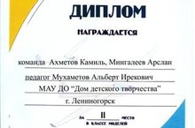 Поздравляем команду учащихся из объединения «Авиамоделирование» в составе: Мигалеева Арслана и Ахметова Камиля занявших 2 место в нелегкой борьбе и педагога Мухаметова Альберта Ирековича за подготовку призеров