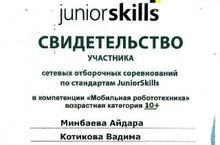 14 января в г. Набережные Челны ребята из объединения «Робототехника» Минбаев Айдар и Котиков Вадим под руководством педагога Муллина И.Р. приняли участие в республиканских сетевых (отборочных) соревнования Junior Skills
